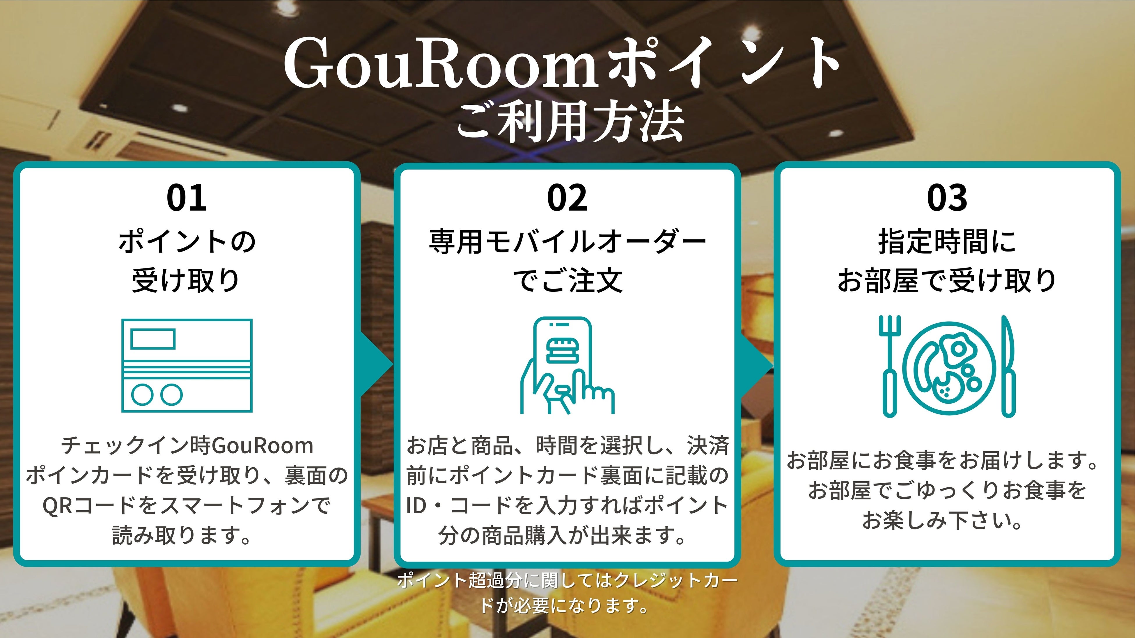 GouRoomのポイント発行機能を使えば、ポイントカード分だけお部屋でお食事をていただくことが可能です。