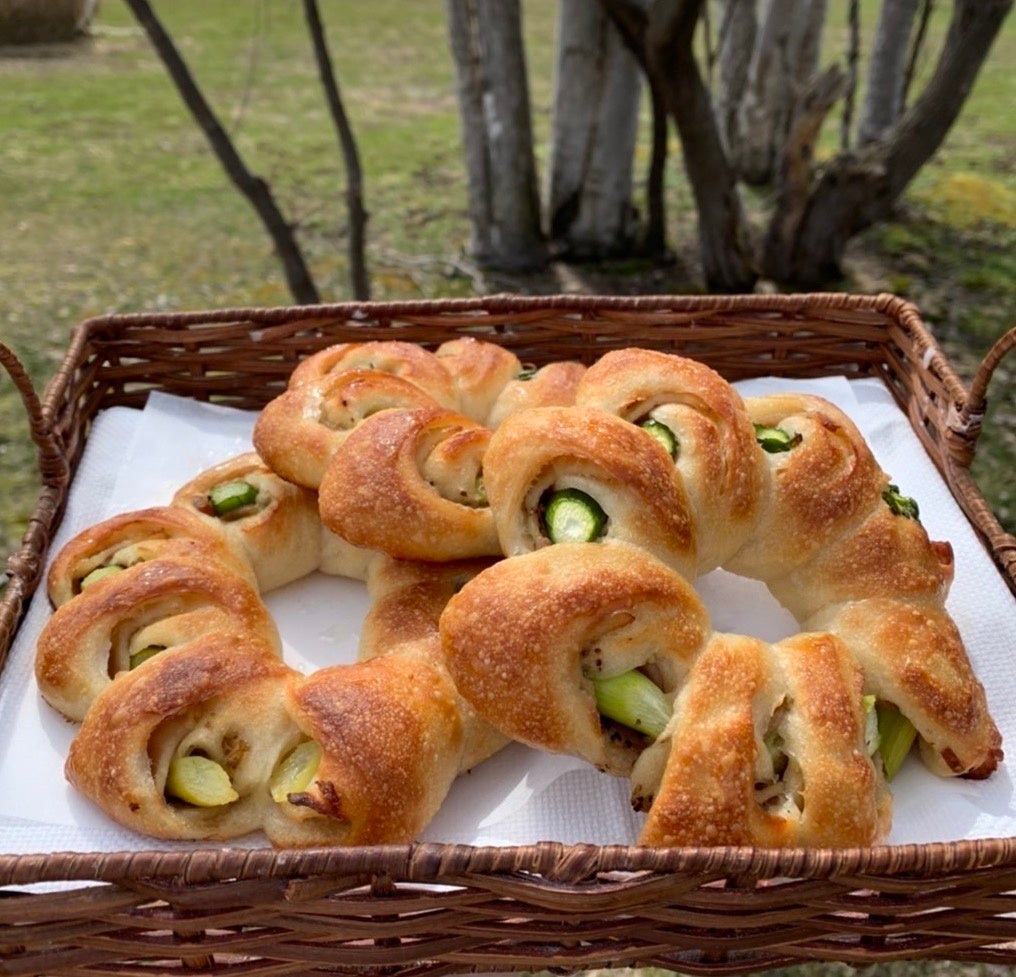 美瑛産アスパラと美瑛豚のベーコンパン 税込価格378円(写真左)