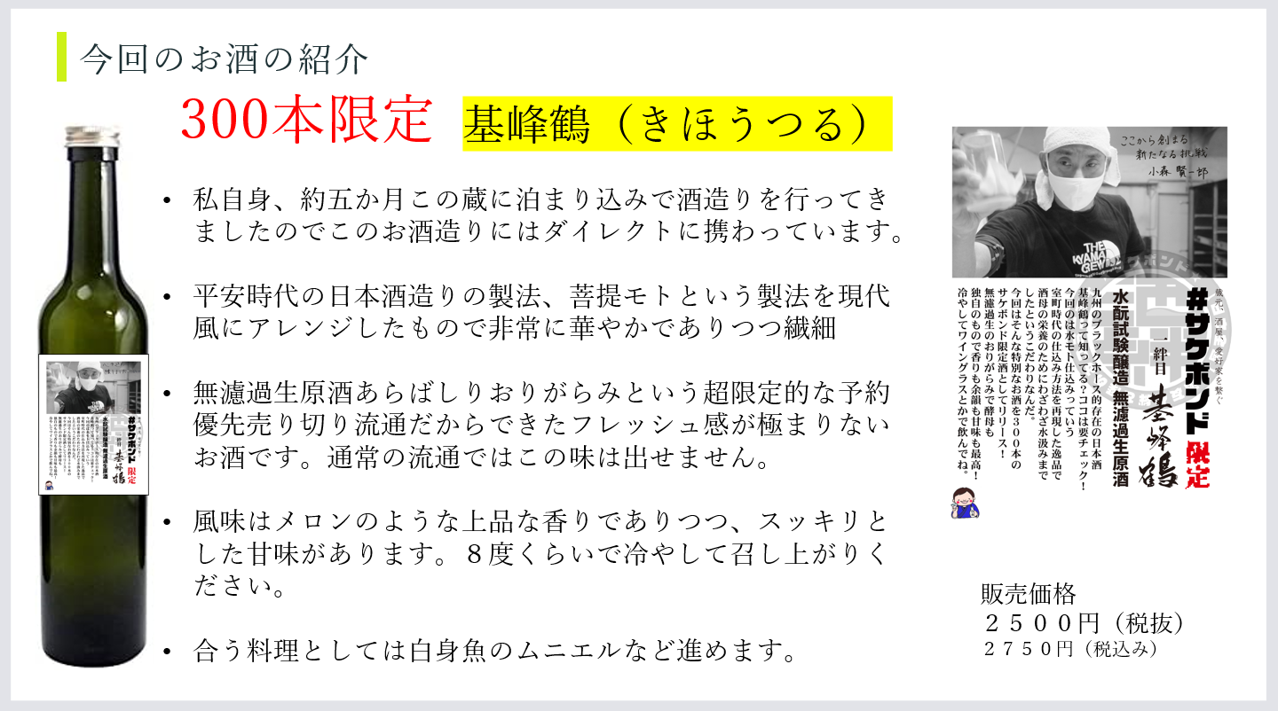 第一弾の参加蔵元は佐賀県にある基峰鶴醸造元、基山商店です。
