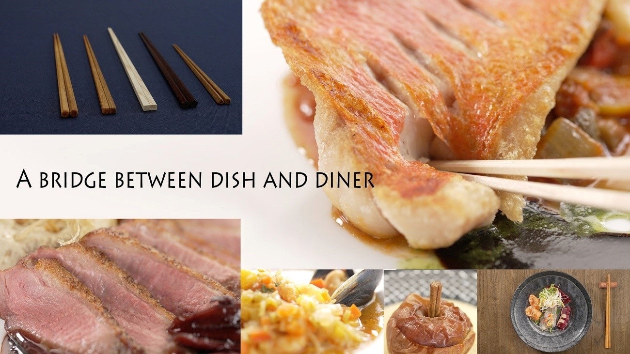 Chopsticks have the characteristic of being able to be used in a variety of ways with a single set, such as for “picking” and “cutting.” We have further subdivided this characteristic and created chopsticks based on the idea that chopsticks can become one of the standard cutlery for Western cuisine such as French cuisine.
