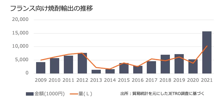 また、2021年度の本格焼酎・泡盛のフランスへの輸出額は、過去最高を更新しており(※貿易統計を元にしたJETRO調査資料に基づく。)既にフランスで人気の高い日本産ウイスキー、日本酒と和製アルコールの消費が拡大している波の中、欧州アルコール市場の起爆剤になる新規商材として、期待が寄せられています。(参照記事:https://prtimes.jp/main/html/rd/p/000000020.000035460.html)
