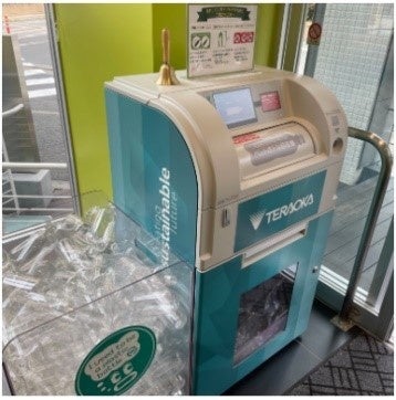 車椅子の方もご利用しやすいユニバーサルデザインです。回収したペットボトルは店内で販売する一部のお惣菜や野菜トレーにリサイクルされています。お持ち込みいただいたペットボトルがいくつかの工程を経て、再びお客さまのお手元に還るという資源循環のプロセスを実感していただけます。