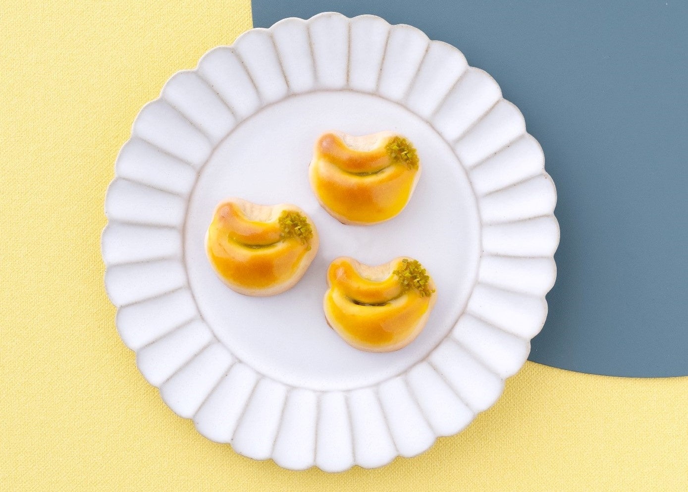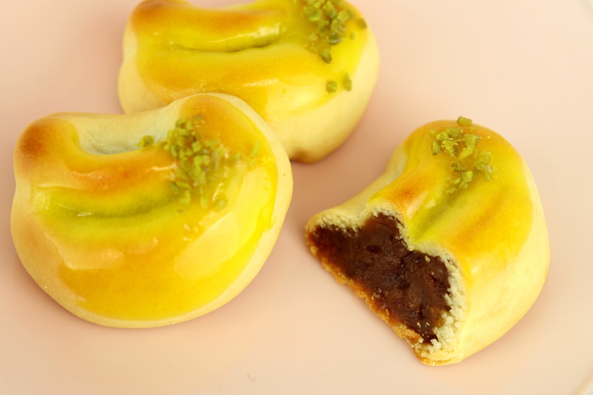 味だけでなく見た目も楽しんでもらえるよう、形はバナナそっくりにデザイン。さらにバナナのヘタは、ピスタチオを使って再現しています。 “バナナ×お饅頭”の組み合わせは、他では見かけないほど珍しく、その可愛らしいビジュアルは、SNS映えも期待できます。