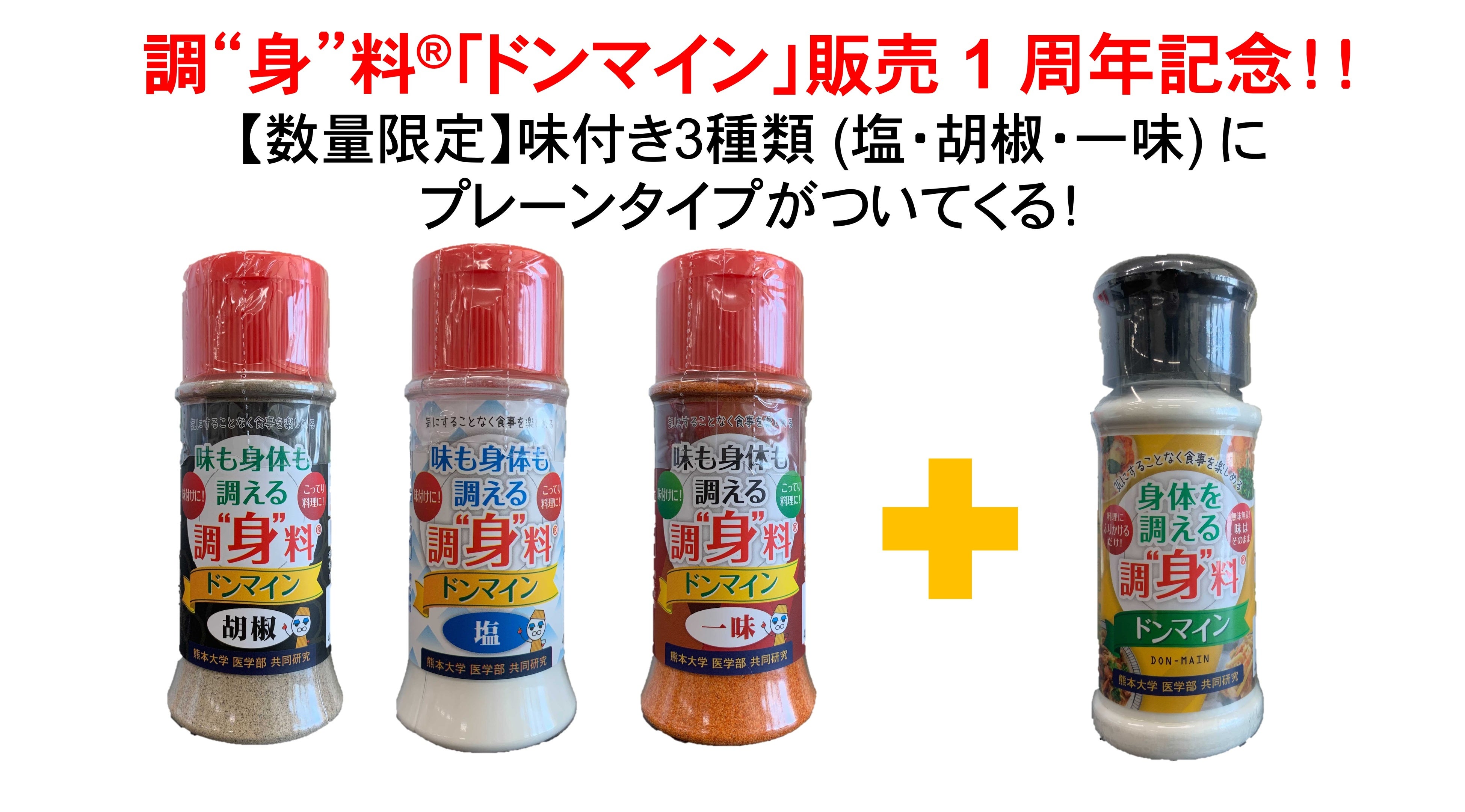 株式会社サイディン (所在地:熊本県熊本市、代表取締役 弘津 辰徳、以下「サイディン」)は、身体をととのえる調“身”料®︎「ドンマイン」の販売1周年記念企画として、ドンマイン全シリーズ (プレーン・塩・胡椒・一味) をお得にお試しできる限定セットの販売をお知らせします。