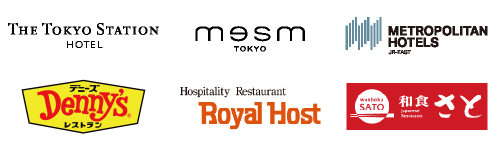 | 日本ホテル株式会社 | 東京ステーションホテル メズム東京、オートグラフ コレクション メトロポリタンホテルズ(7ホテル) ・ホテルメトロポリタン(池袋) ・ホテルメトロポリタン エドモント ・ホテルメトロポリタン 丸の内 ・ホテルメトロポリタン 川崎 ・ホテルメトロポリタン さいたま新都心 ・ホテルメトロポリタン 高崎 ・ホテルメトロポリタン 長野 |