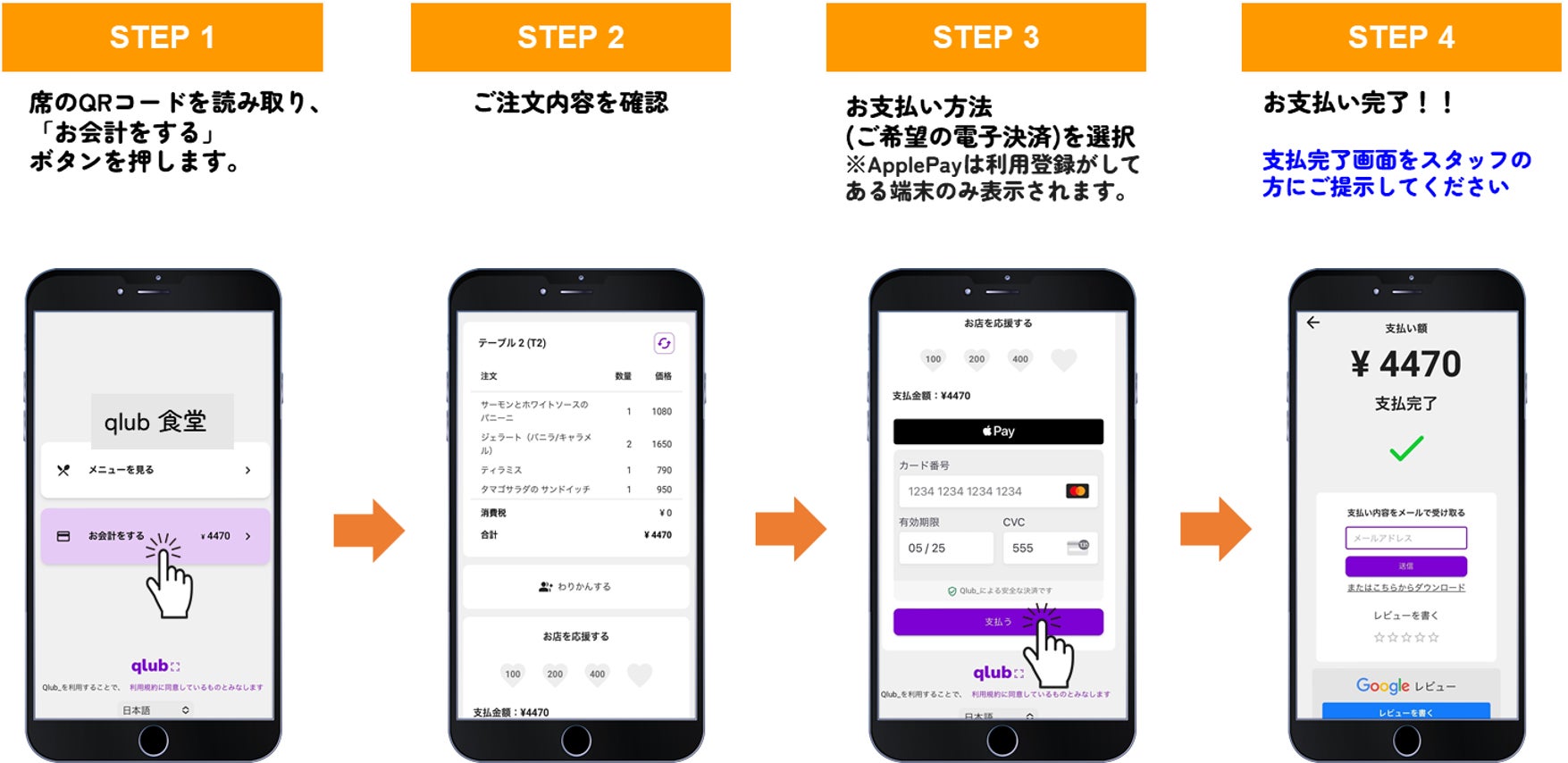 「qlub」は、アプリのダウンロードやユーザー登録が不要で、QRコードをスマートフォンで読み取り、10秒以内にお客様がセルフで飲食店での会計を済ませることが可能な革新的なサービスです。