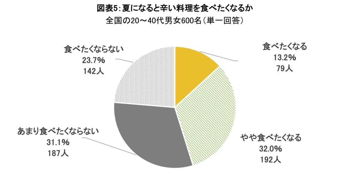 - 「夏に辛いものを食べたい」と回答した人は約半数。その理由として「単純に好きだから」に続く2位が「食欲増進のため」