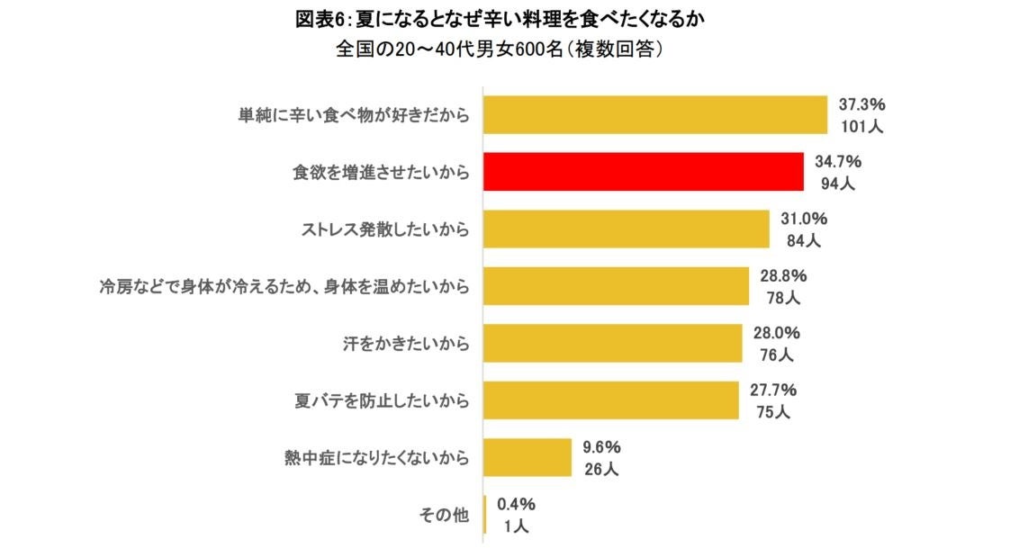 ・3人に1人が夏に辛いものを食べたくなる理由として、「食欲増進のため」と回答。