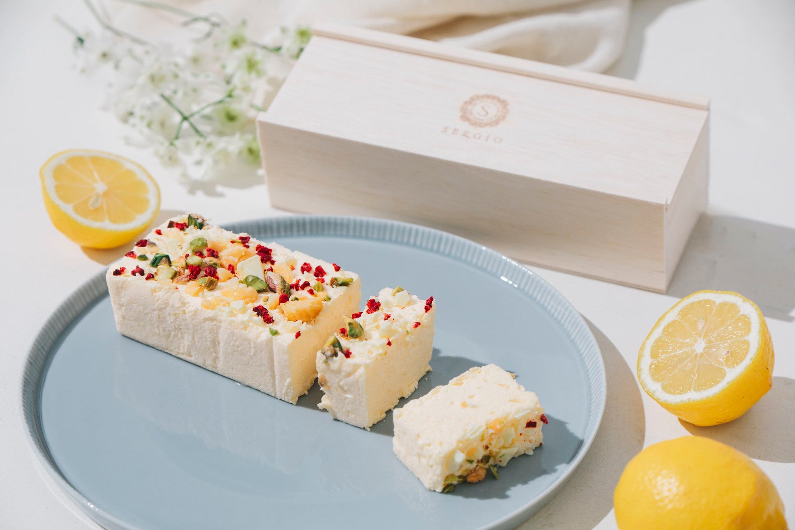 口どけのいいクリーミーな生地に広がる爽やかなレモンの酸味に、香ばしいナッツとドライフルーツがベストマッチ。溶かし具合や塩のアリ/ナシを変化させてみてお召し上がりくださいませ。