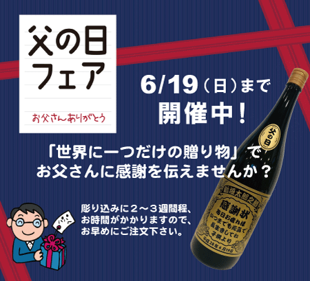 忠孝酒造オンラインショップでは6/1(水)より『父の日ギフトフェア』特設サイトを公開。