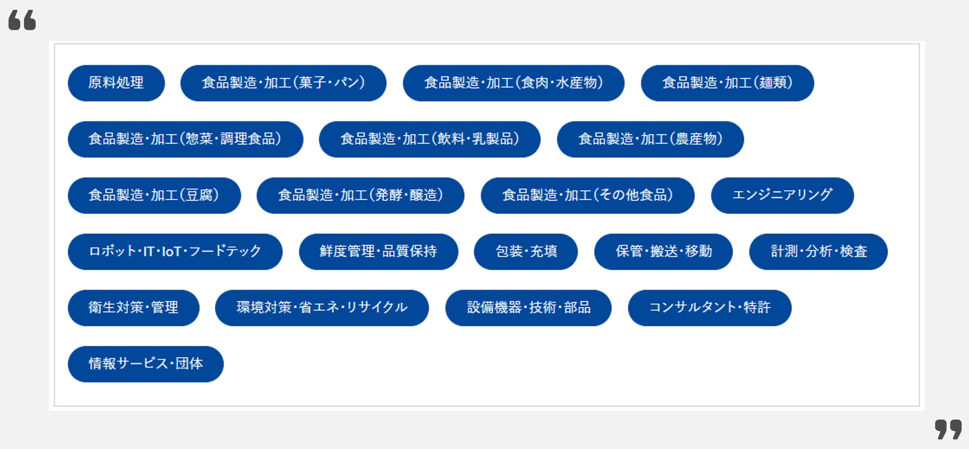 引用元URL:https://www.foomajapan.jp/exhibitor_info/search/exhibitor-category-list/