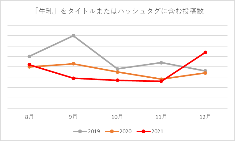 スナップディッシュでは、「牛乳」関連の料理投稿数が近年減少傾向にあったにも関わらず、牛乳消費量の落ち込みに伴い生乳が廃棄されるかもしれないとの社会問題が話題になった2021年12月には、例年の160%まで投稿数が急増しました。特に、新たな傾向として「#牛乳消費」の投稿数が増えていることから、これらの動きは「家庭の料理を通じて牛乳・乳製品の食品ロス削減や生産者応援に貢献したい」というユーザーマインドの現れと捉えました。当社はこうしたユーザーの思いに応え、共に食に関わる社会問題を解決することを目指し、本プロジェクトに参画します。