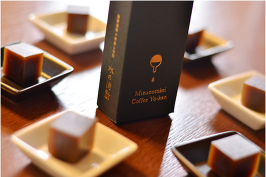 黒部川扇状地の伏流水(湧水)仕込みのカフェ・オ・レベースを製造したのち、伝統製法により作られた麦芽水飴を加えてつくる羊羹です。