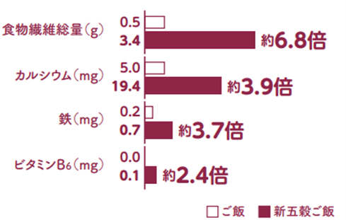 ご飯から五穀ご飯に変更した場合の栄養価(※180gあたりの含有量)
