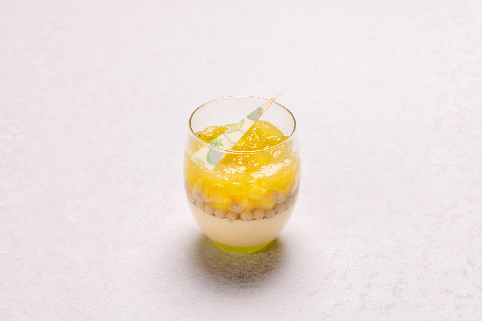 トップに美しくスライスされたマンゴーがひときわ目を引く人気のマンゴープリンです。たっぷりのフレッシュマンゴーと濃厚なマンゴープリンが口いっぱいに広がる夏らしい一品です。底に敷き詰めたパッションフルーツのジュレと一緒にお楽しみください。