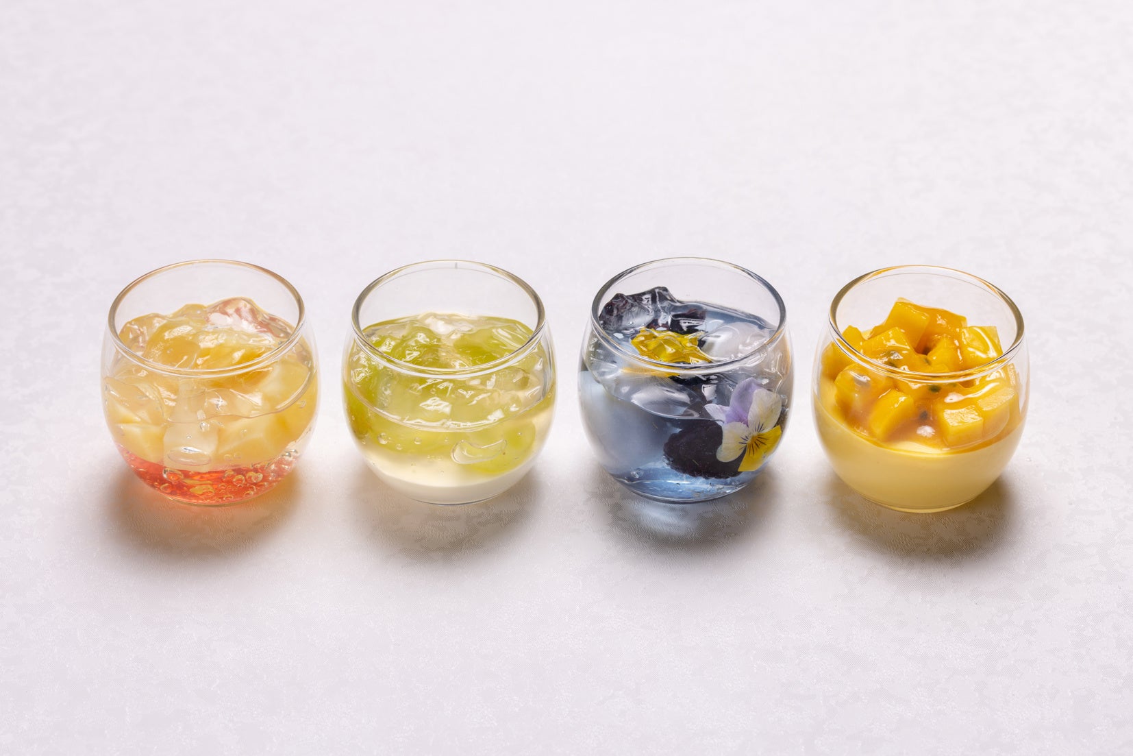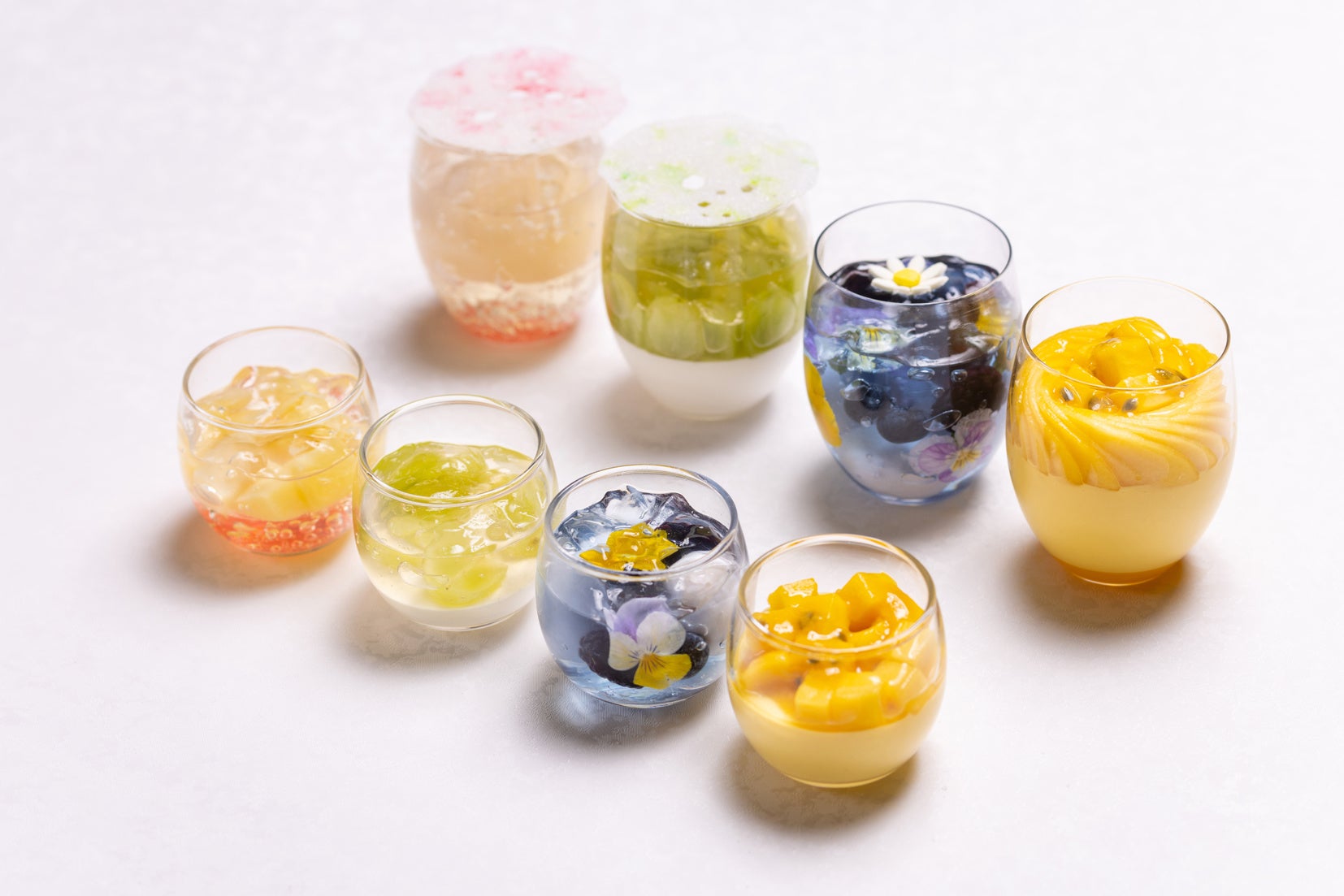 スイカ、マンゴー、メロン、桃など旬のフルーツを堪能するカラフルなグラススイーツ全8種類