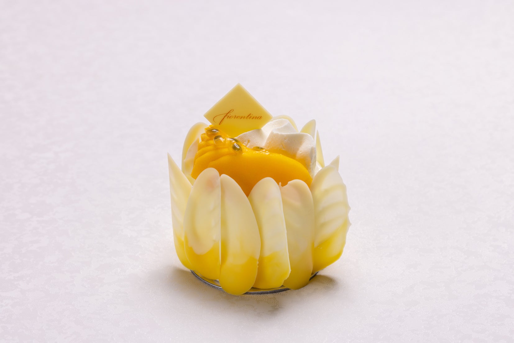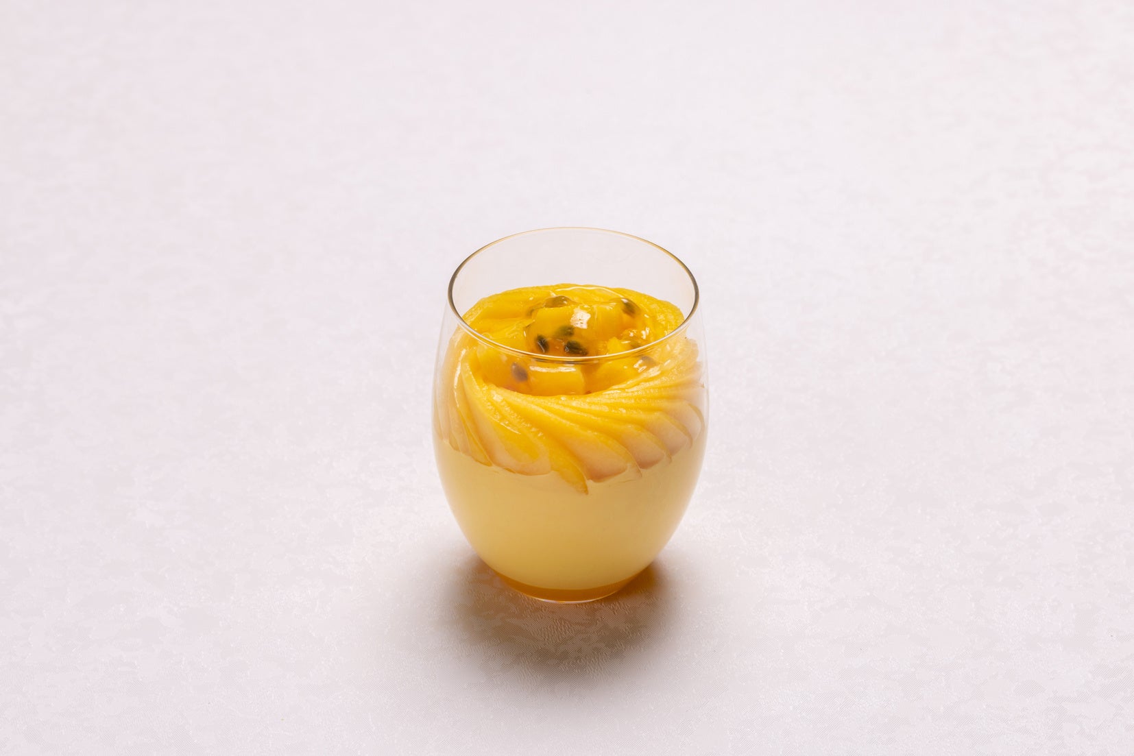濃厚な味わいの完熟マンゴーと優しい甘さの濃厚なクリームがベストマッチです。トップにあしらったパッションフルーツのソースが味わいを引き立てます。