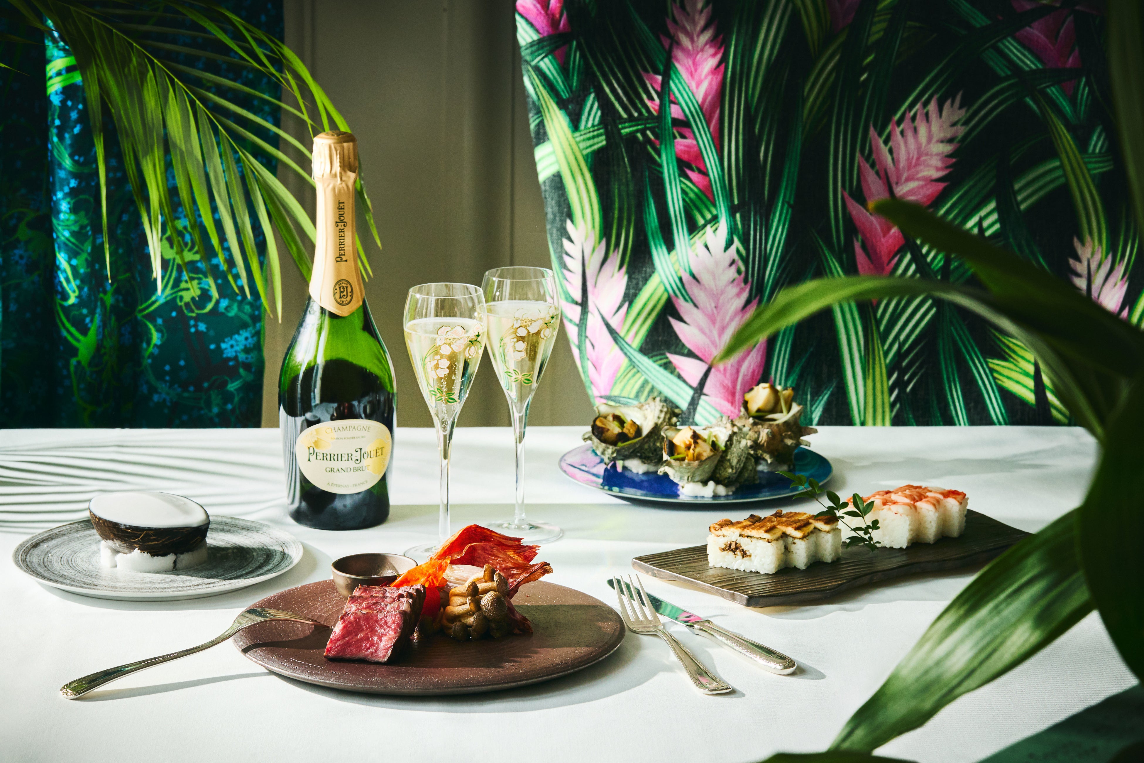 都会の真ん中にありながら、静謐な枯山水の石庭を有する緑に囲まれた開放的な天空の庭は、自然と芸術を愛しむ「ペリエ ジュエ」のシャンパーニュを愉しむベストアドレス。刻一刻と変化していく美しい空を眺めながら、爽快感と華やかさを併せ持つシャンパーニュとともに夜の訪れを祝う、優雅でラグジュアリーなひと時をご堪能ください。