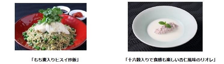 今回のコラボでは、”カラダにうれしい、新感覚体験フェア”としてはくばくの『もち麦』『十六穀ごはん』を使用した「もち麦入りヒスイ炒飯」と「十六穀入りで食感も楽しい杏仁風味のリオレ」を6月1日(水)~6月30日(木)の期間限定でスーツァンレストラン陳渋谷店にてご提供いただきます。