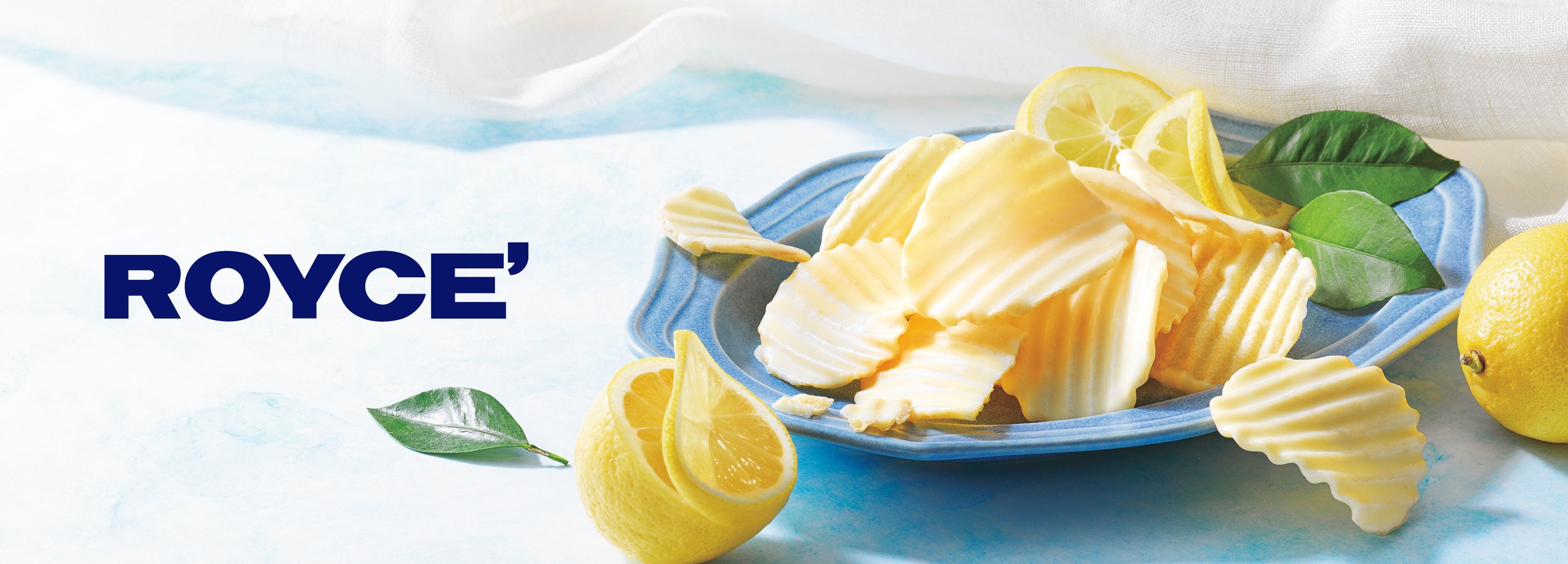 さわやかな酸味が特長のレモンチョコレートをポテトチップの片面にコーティング。レモンの味わいが引き立つよう、レモンチョコレートにはチーズ風味・ヨーグルト風味のチョコレートを隠し味に加えています。レモンのさわやかな香りと酸味、ポテトチップの塩味がひとつになり、塩レモンを思わせる味わいです。