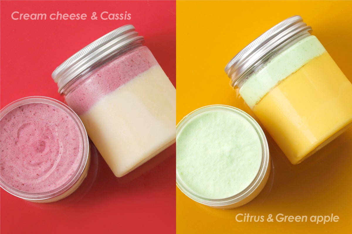 FUKUNAGA901のアイススイーツ、「おでかけパフェ」に新フレーバー「クリームチーズ・カシス」「せとか・青りんご」が登場します。