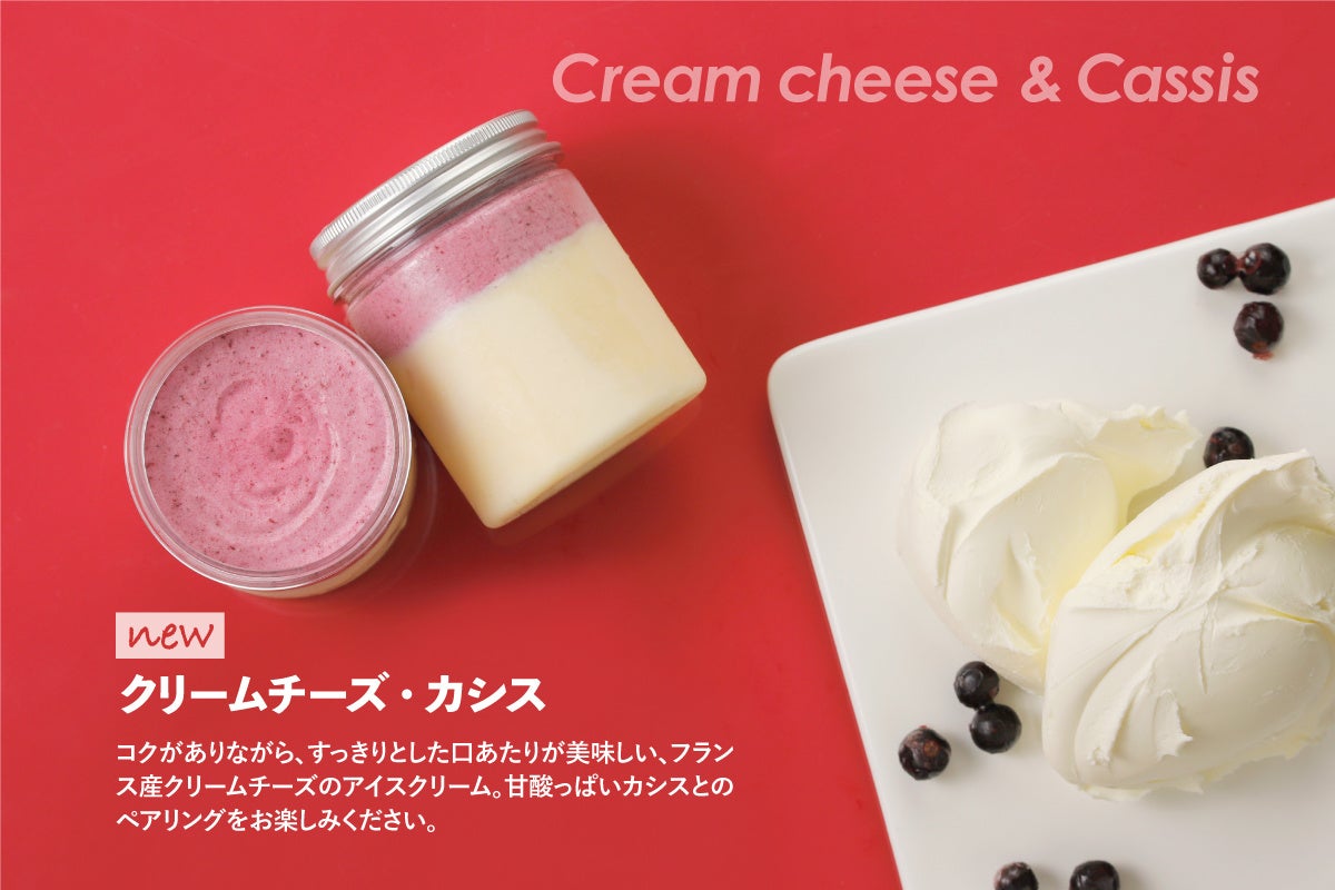 コクがありながら、すっきりとした口あたりが美味しいフランス産クリームチーズを使用したアイスクリーム。甘酸っぱいカシスの酸味とのペアリングをお楽しみください。