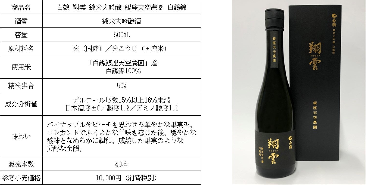 白鶴酒造株式会社は、2022年6月8日(水)、銀座の屋上「白鶴銀座天空農園」で育てた酒米「白鶴錦」100%で仕込んだ「白鶴 翔雲 純米大吟醸 銀座天空農園 白鶴錦」40本を、販売店限定で発売します。2021年産「白鶴錦」は、3代目のチームリーダーが初めて作った酒米です。