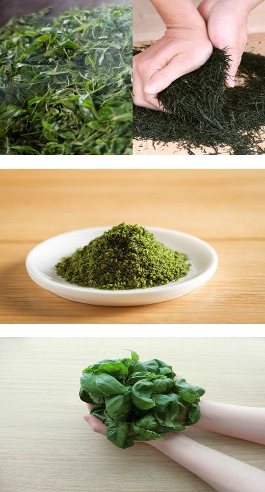 (1)日本茶の製法で引き出した“甘い香りと深い旨味”の『深蒸しバジル』を採用!