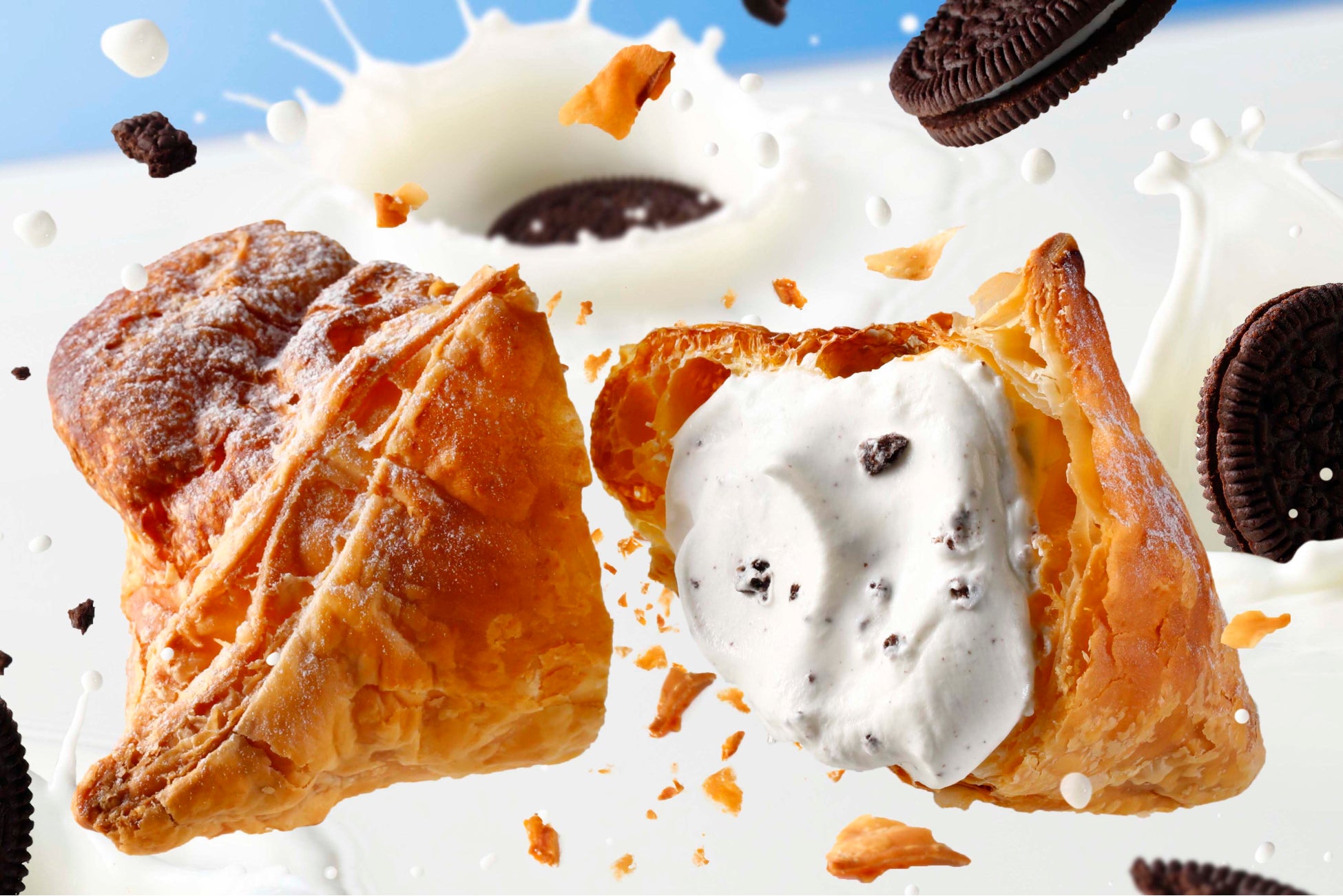 オーブンで焼き上げたサックサクのパイに、香ばしいココアクッキー入りのミルククリームをお店で詰め一つ一つ仕上げます。北海道産生クリームとマスカルポーネでまろやかに仕上げたミルククリームと、相性抜群のココアクッキーのアクセントが楽しめる期間限定フレーバーです。