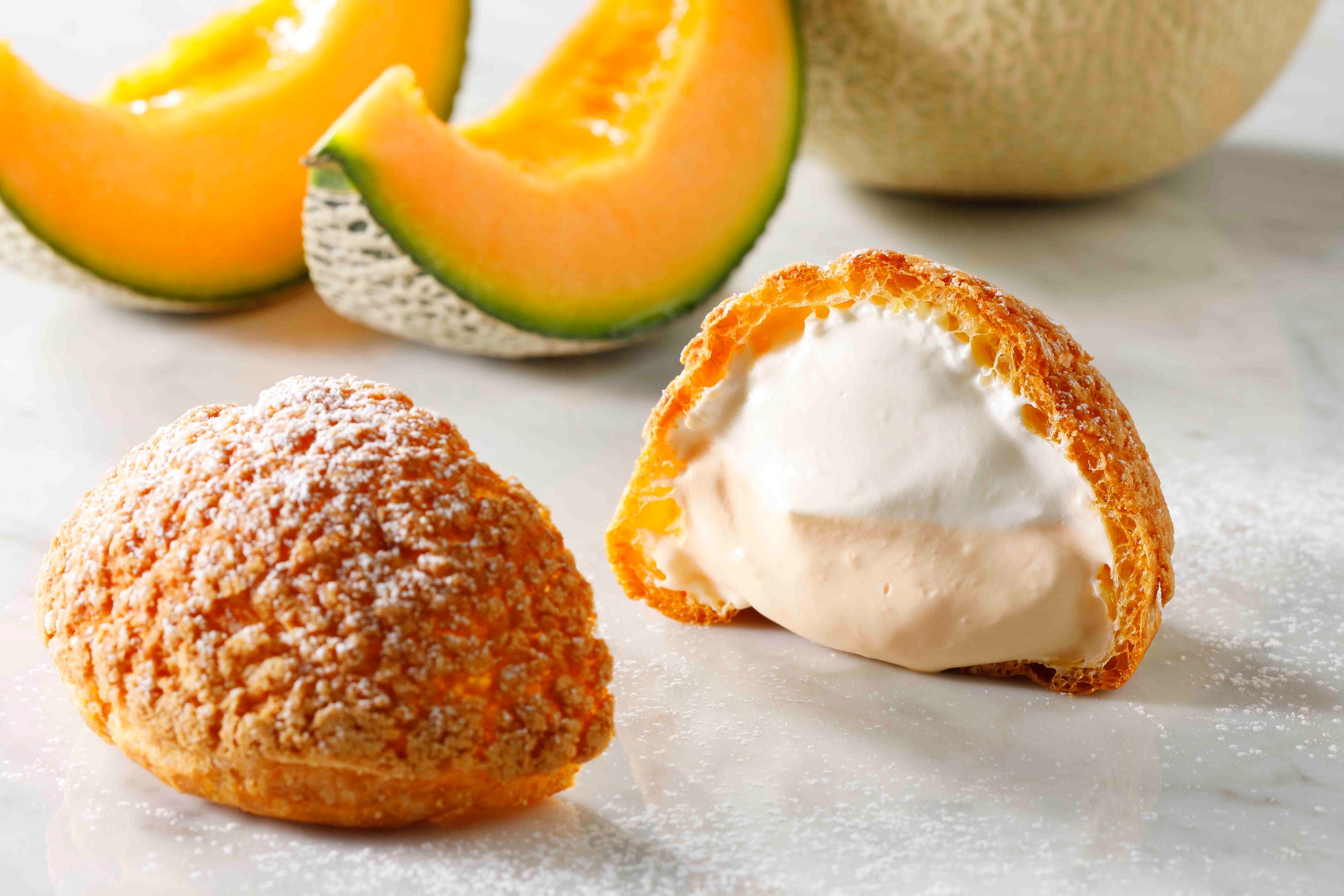 初夏にぴったりな、メロンの優しい味わいのクリームとオリジナルチーズクリームがお楽しみいただけるチーズパフです。