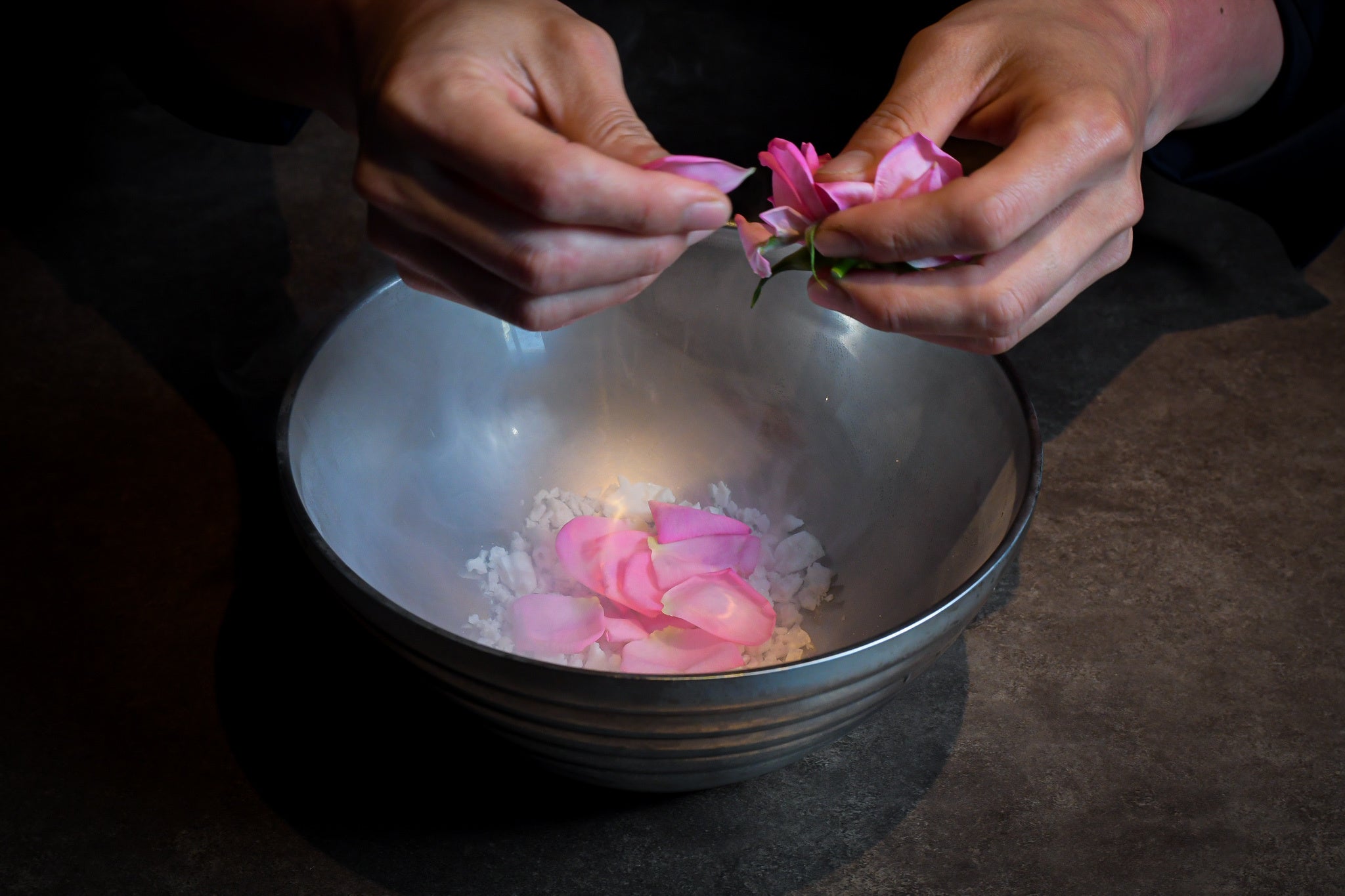 創造的であたらしい花食体験「美味しい花体験」の創作に取り組むエディブルフラワー研究所。花のポテンシャルを最大限に引き出した「飾り以外」の創造性を追い求めて、各業界のトップクリエイターとコラボレーションを展開します。今回はVERT(神楽坂)の田中 俊大シェフによるバラ香るデザートが生まれました。