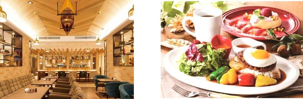 「高原リゾートの珈琲店」をイメージした店内は、木の香りただよう心地よい癒しの空間。ドリンクメニューは100%オーガニック&レインフォレスト・アライアンスのW認証珈琲豆を使用したブレンド珈琲やアレンジラテ、フルーツティー・フローズンドリンクなどバラエティ豊かにご用意。フードメニューは『むさしの森珈琲』でしか味わえないメレンゲをご注文毎に立て焼きあげる「特製ふわっとろパンケーキ」をはじめフレンチトーストなどのデザートに、ロコモコ・パスタなどのカフェGOHANを取り揃えております。