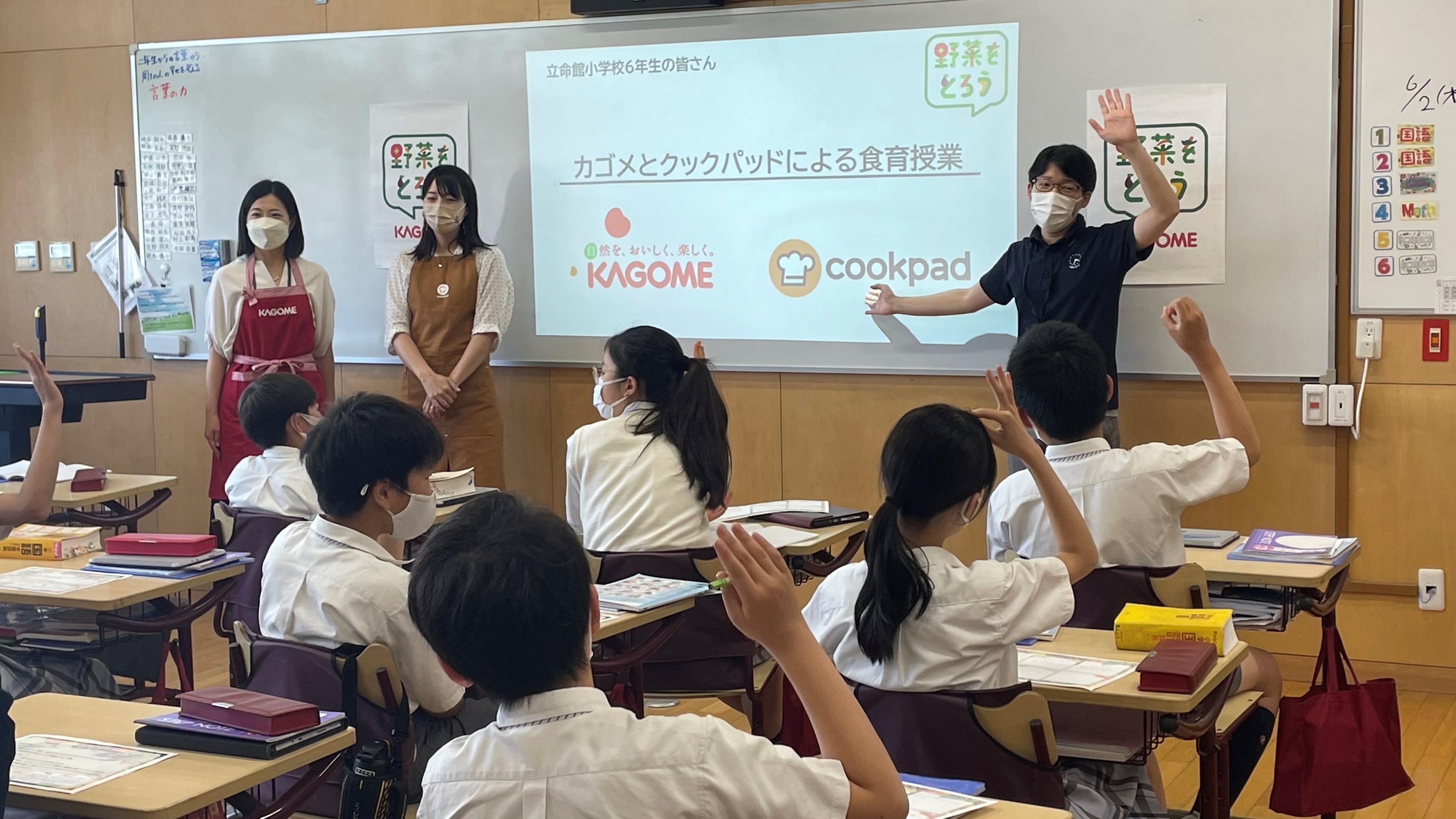カゴメ株式会社(代表取締役社長:山口聡、本社:愛知県名古屋市)とクックパッド株式会社(代表執行役:岩田林平、本社:神奈川県横浜市)は、立命館小学校の6年生117名を対象とし、“野菜をとろう、あと60g!楽しくおいしい野菜レシピを発信しよう!” をテーマとした食育授業を、2022年6月2日(木)に開催いたしました。今後、児童らは野菜を使ったレシピづくりに取り組み、レシピサービス「クックパッド」にて考案したレシピを発信してまいります。