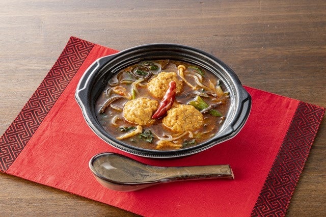 鶏と豚肉を使ったふっくらとした肉団子入りの刺激的な辛味を感じられる火鍋です。肉団子を煮込んだ煮汁をスープに使用し、一体感を感じられる味わいに仕上げました。スープは花椒・胡椒・クミン・五香粉のスパイスをきかせ、香りにも拘りました。