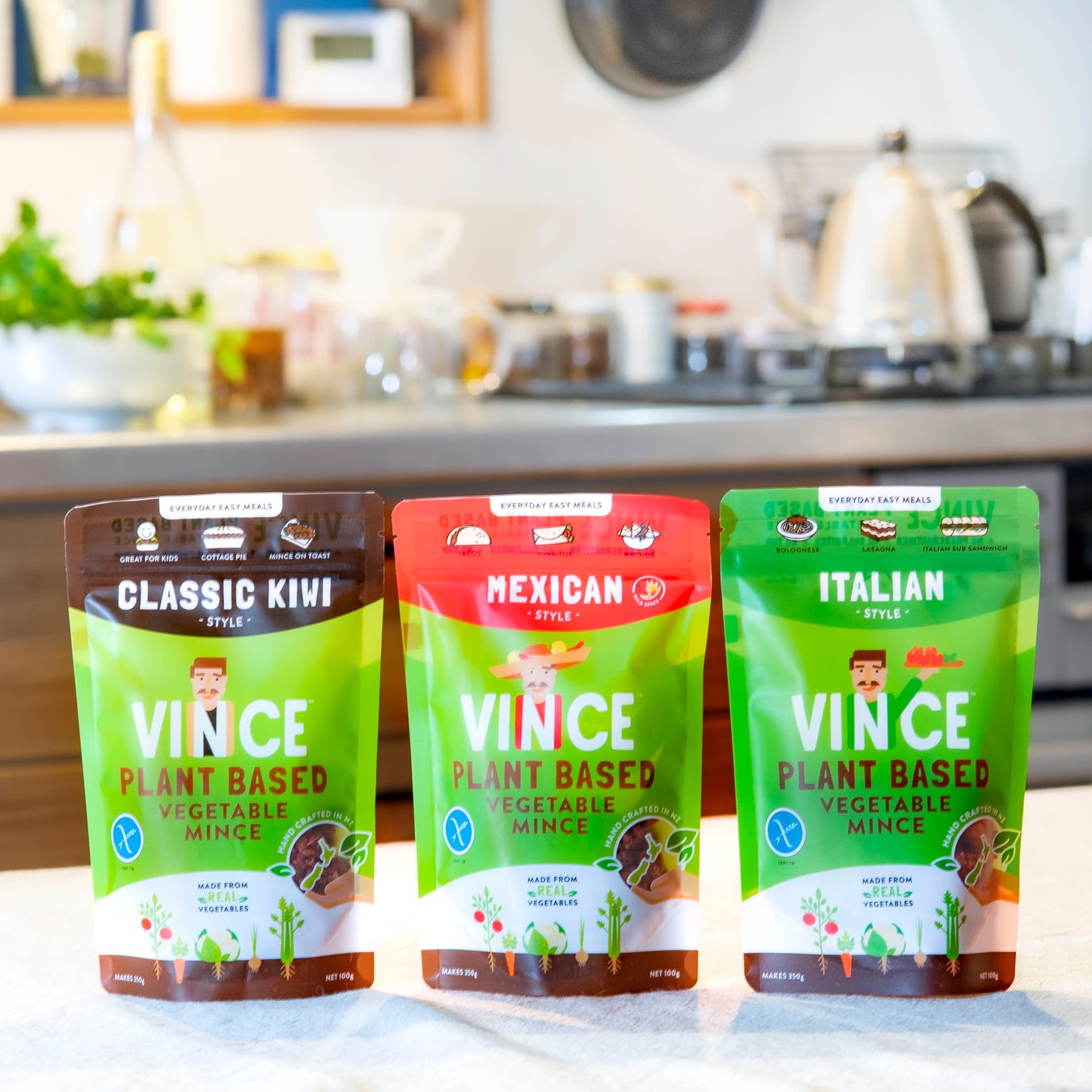 VINCEは「CLASSIC KIWI」(クラシック キウイ*)、「ITALIAN」(イタリアン)、「MEXICAN」(メキシカン)の3種類があり、いずれも材料にはニュージーランド産の野菜を使用、ハーブやスパイスなどでフレーバーを変えています。オムレツの具にしたり、パスタにあえたりタコライスの具にしたりと、さまざまなアレンジで調理できます。*キウイフルーツは入っておりません