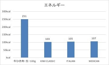 例)生の牛ひき肉100g(*1)とVINCE各種(湯戻し後100g)を比較