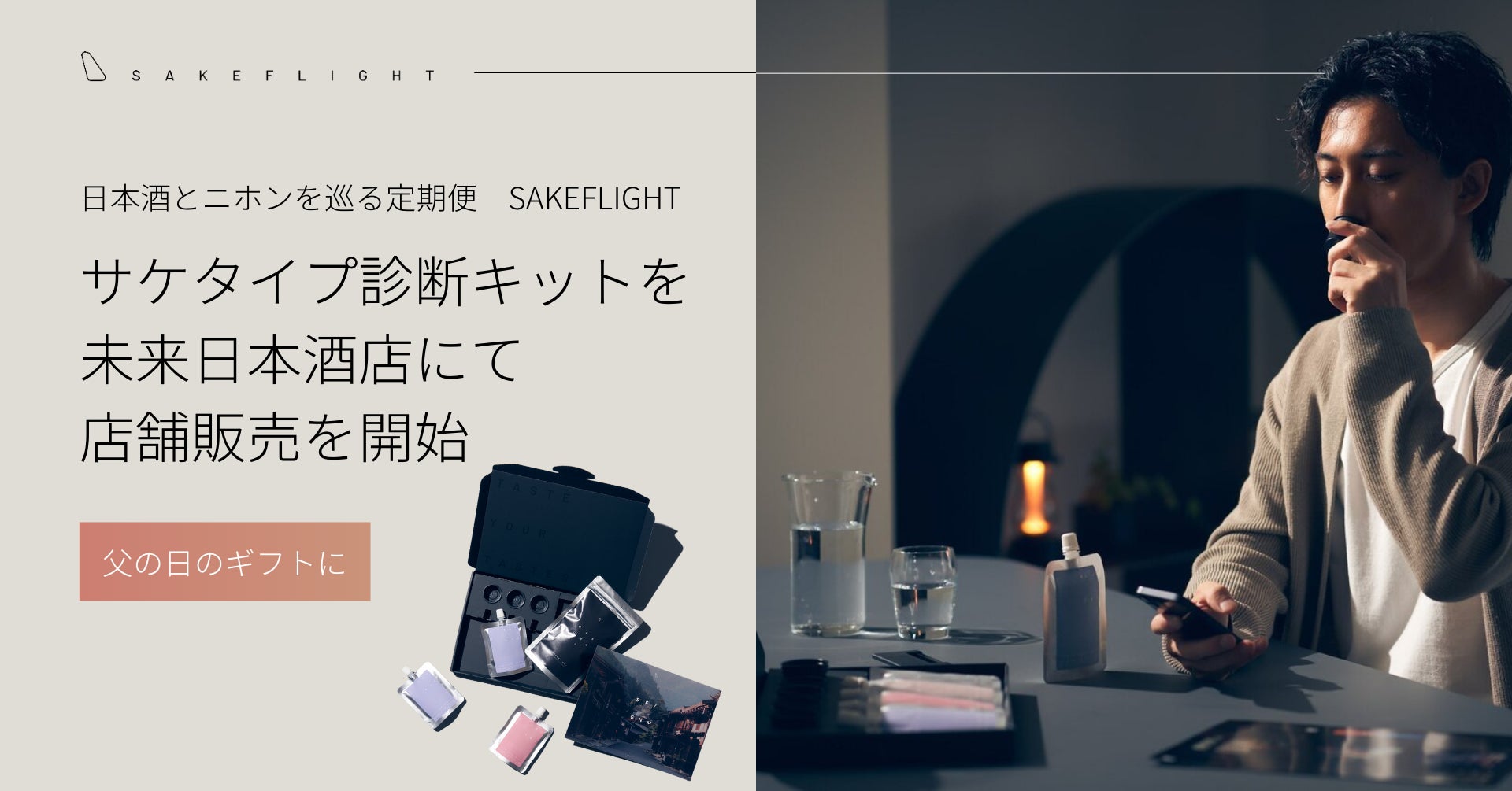 また、『SAKEFLIGHT(サケフライト)』では、自分好みの日本酒のテイストを診断できる「サケタイプ診断キット」を初回にお届けしており、今回父の日ギフトとして店舗販売するのは、このキットです。