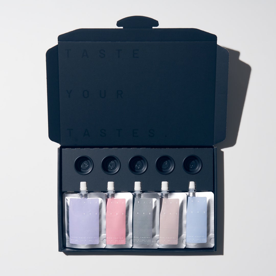 日本酒5種飲み比べキットで、自分の好みのサケタイプを診断します。