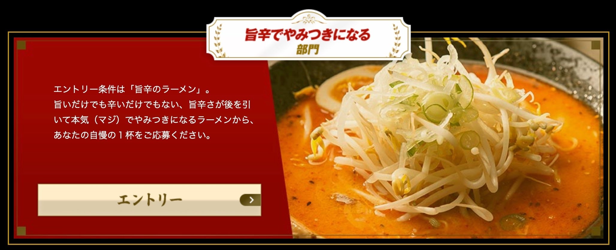 ●旨辛でやみつきになる部門(賞金100万円+カップ麺商品化)