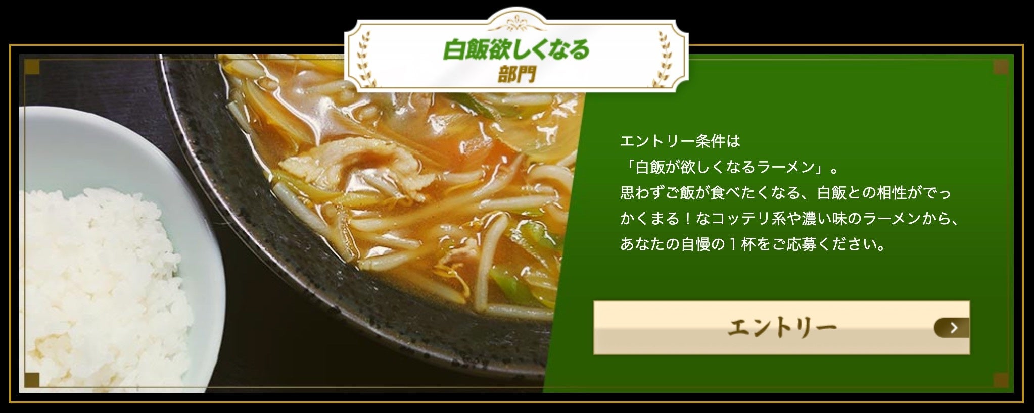 ※エントリー条件は「白飯が欲しくなるラーメン」。