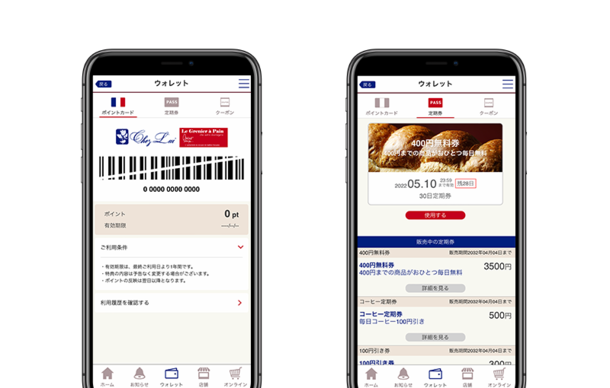 本アプリは、日本ガストロノミー研究所が運営するブーランジュリー&パティスリー『シェ・リュイ』『ル・グルニエ・ア・パン』、カフェ『ロティ シェ・リュイ』、『レストラン シェ・リュイ』で利用可能な会員向けアプリです。会員証機能を搭載し、従来のポイントカードで貯めたポイントの移行にも対応しています。店舗でのお会計金額100円ごとに1ポイントが付与され、貯まったポイントは1ポイント=1円として次回以降利用できる仕組みです。また、『betrend パスチケ』を活用した定期券機能も搭載しており、ご利用シーンや頻度に合わせて各種定期券を使用できます。