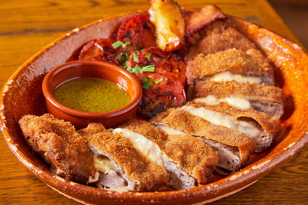 牛もも肉にチョリソやチーズを挟んで、薄い衣をつけて揚げたボリューム感のあるスペイン風カツレツ。 ¥2,970