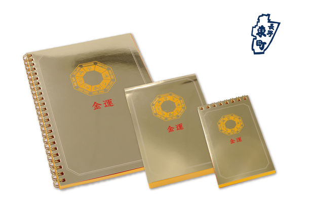 トーダンの大ヒットロングセラー商品「金運カレンダー」から生まれたグッズ。裏表紙に箔押し東町ロゴ入り