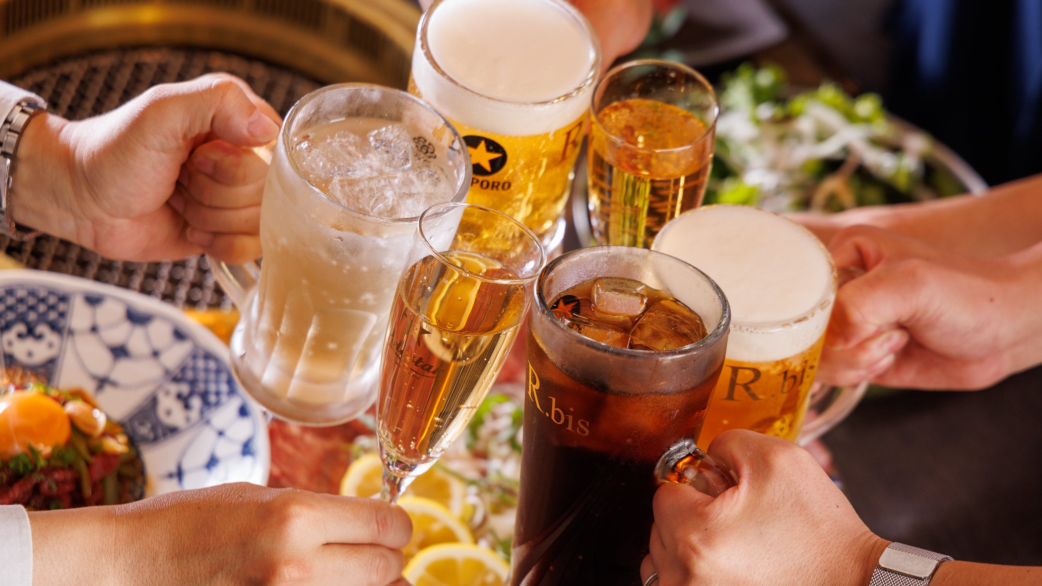 生ビール、スパークリングワインをはじめ、グラスワイン、ハイボール、各種サワーやカクテル、梅酒、焼酎、日本酒、ソフトドリンクまでお選びいただけます。