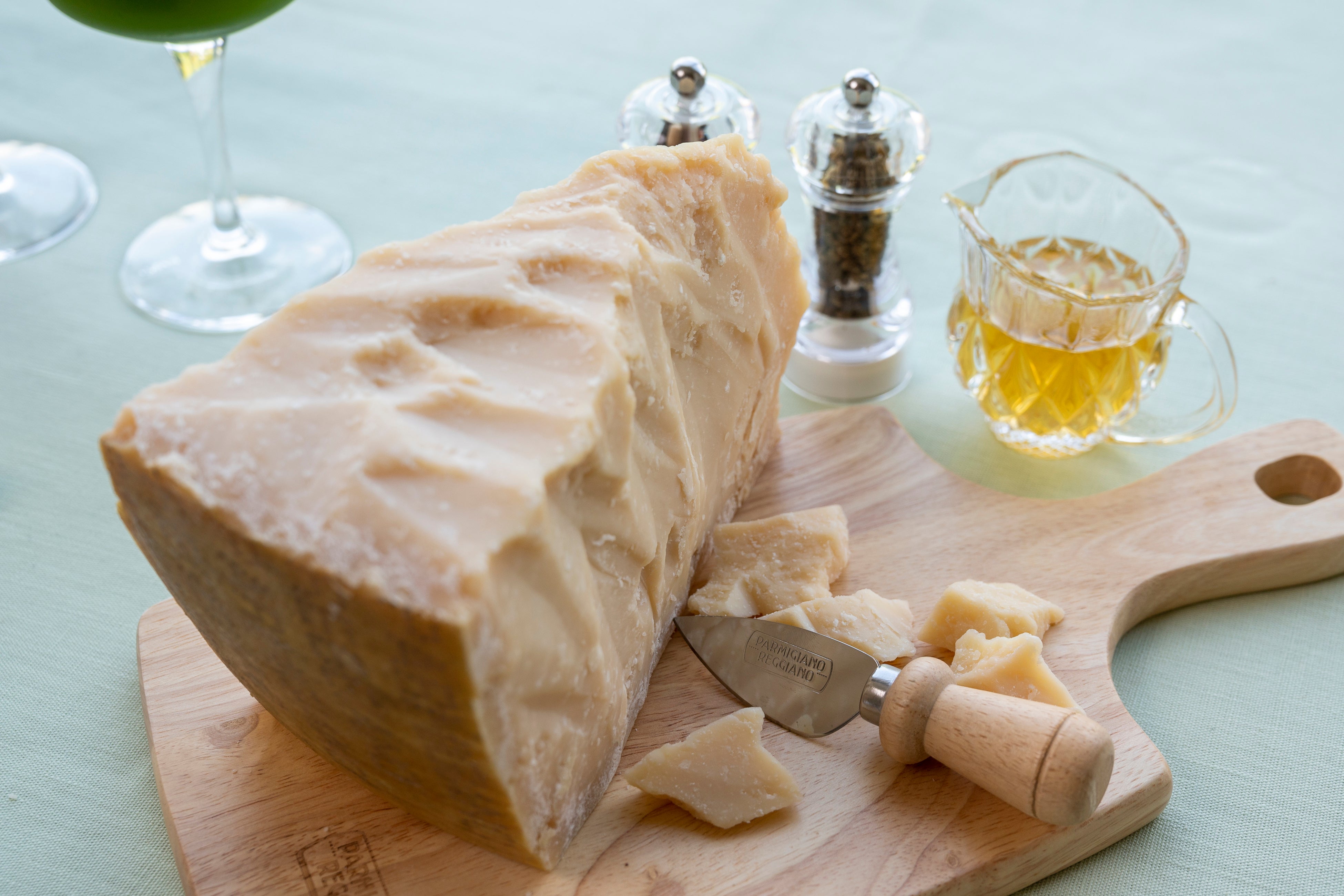 イタリアチーズの王様と称されるパルミジャーノ・レッジャーノは、北イタリアの限られた地域のみで、約1,000年の伝統を守り、添加物を一切使わずに職人の手により作られているチーズ。通常、約2年という長い熟成の間に育まれる深い旨味と独特な食感が特長で、パルミジャーノ・レッジャーノ・チーズ協会の厳しい審査を合格したものだけがその名を名乗ることができ、それ以外のチーズとは全くの別物です。