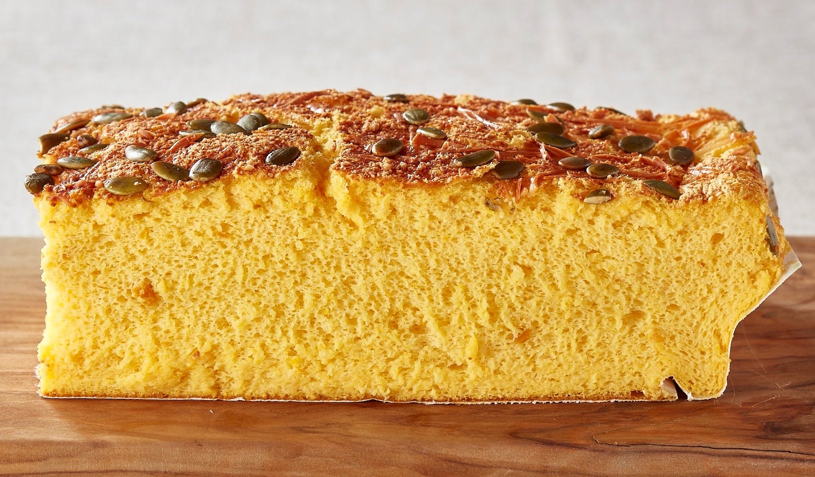 チーズとかぼちゃの種をトッピングしました。かぼちゃの素朴な甘さとチーズの塩味が