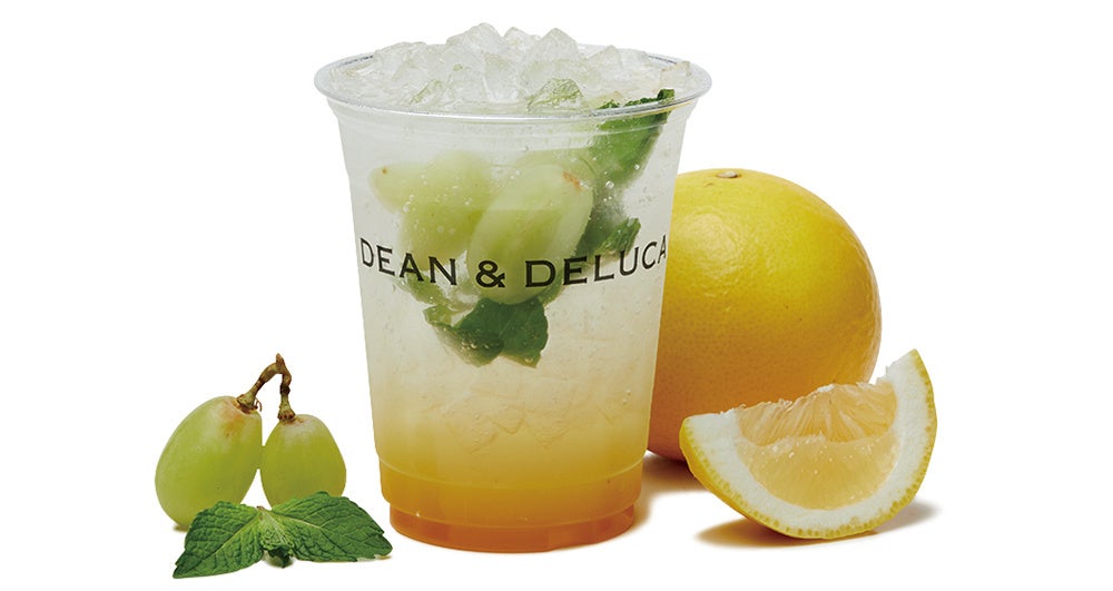 日向夏をベースにレモネードとオレンジジュースを掛け合わせ、フレッシュのスペアミントをアクセントに加えました。ジューシーなぶどうは、そのままおたのしみください。