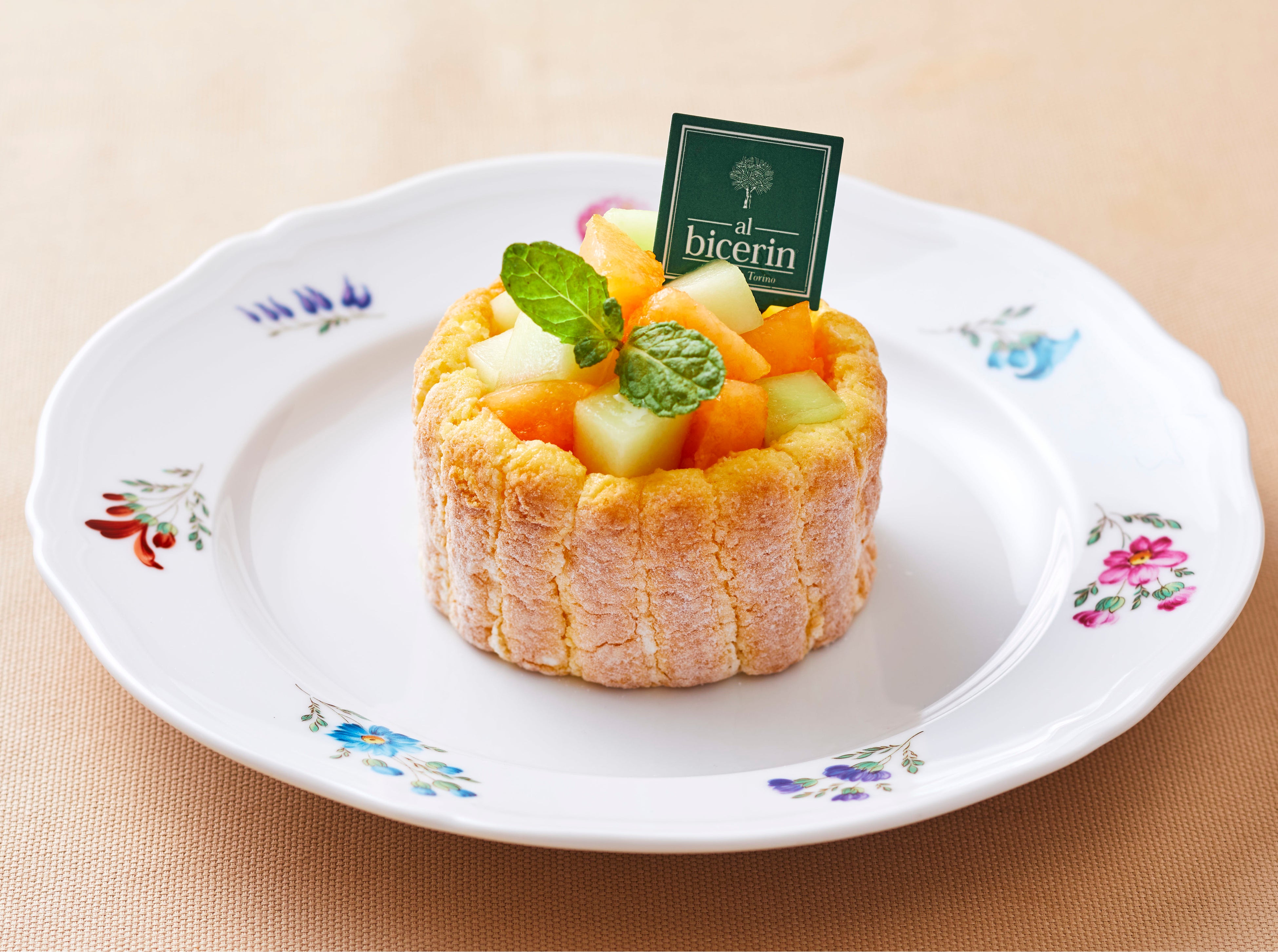 さっくりと焼き上げたビスキュイの器に濃厚な味わいのババロアを中に流し固め、フレッシュなメロンを贅沢に盛り付けたシャルロットです。