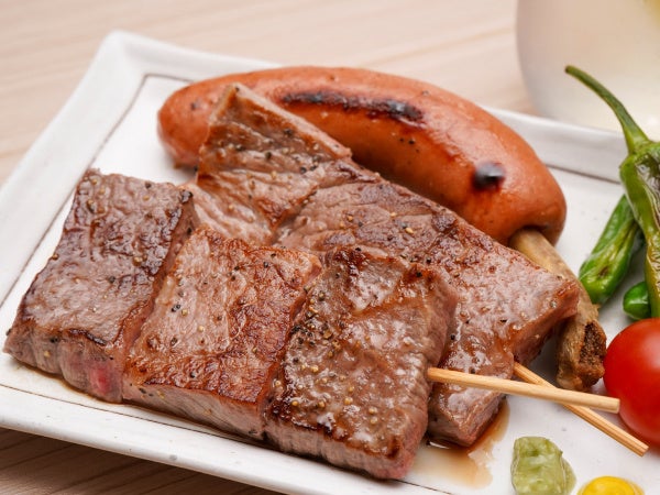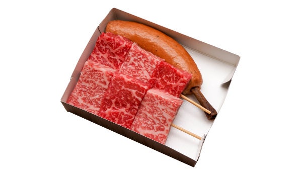 お酒のあてや、ちょっとした自分へのごほうびに最適な、国産黒毛和牛串焼き&骨付きフランクのセットです。ジューシーなモモと芳醇なロースを串焼きに。食べ応えのある骨付きフランクは塩胡椒、からしをつけてお召し上がりください。父の日ギフトカードもお付けできます。父の日限定20セットで販売します。特別価格2,000円(税込)