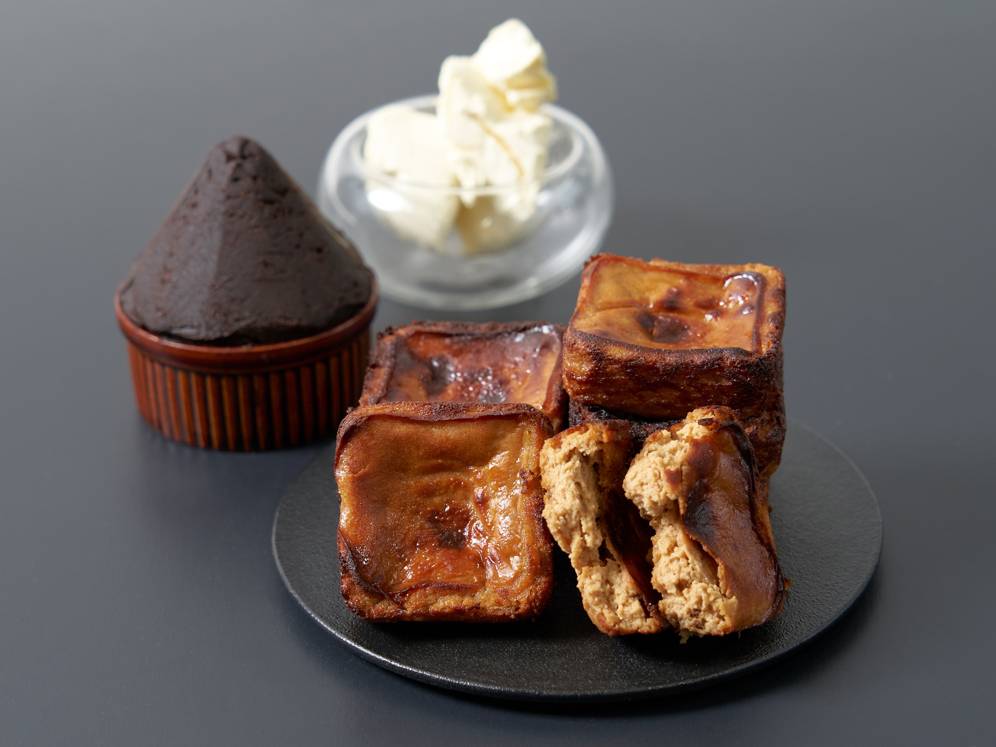 愛知県⺠の⽅々に親しみのある味噌を合わせ、美⾷とアートの街スペイン・バスク地⽅の伝統的ケーキとのコラボレーション。自分へのデザート、手土産でも喜んでいただける一品です。